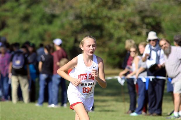 Gracie Mills of Potts Camp leads the girls by over a minute at 19:33. Potts Camp has two girls under 21 minute so it could be either team's race.
